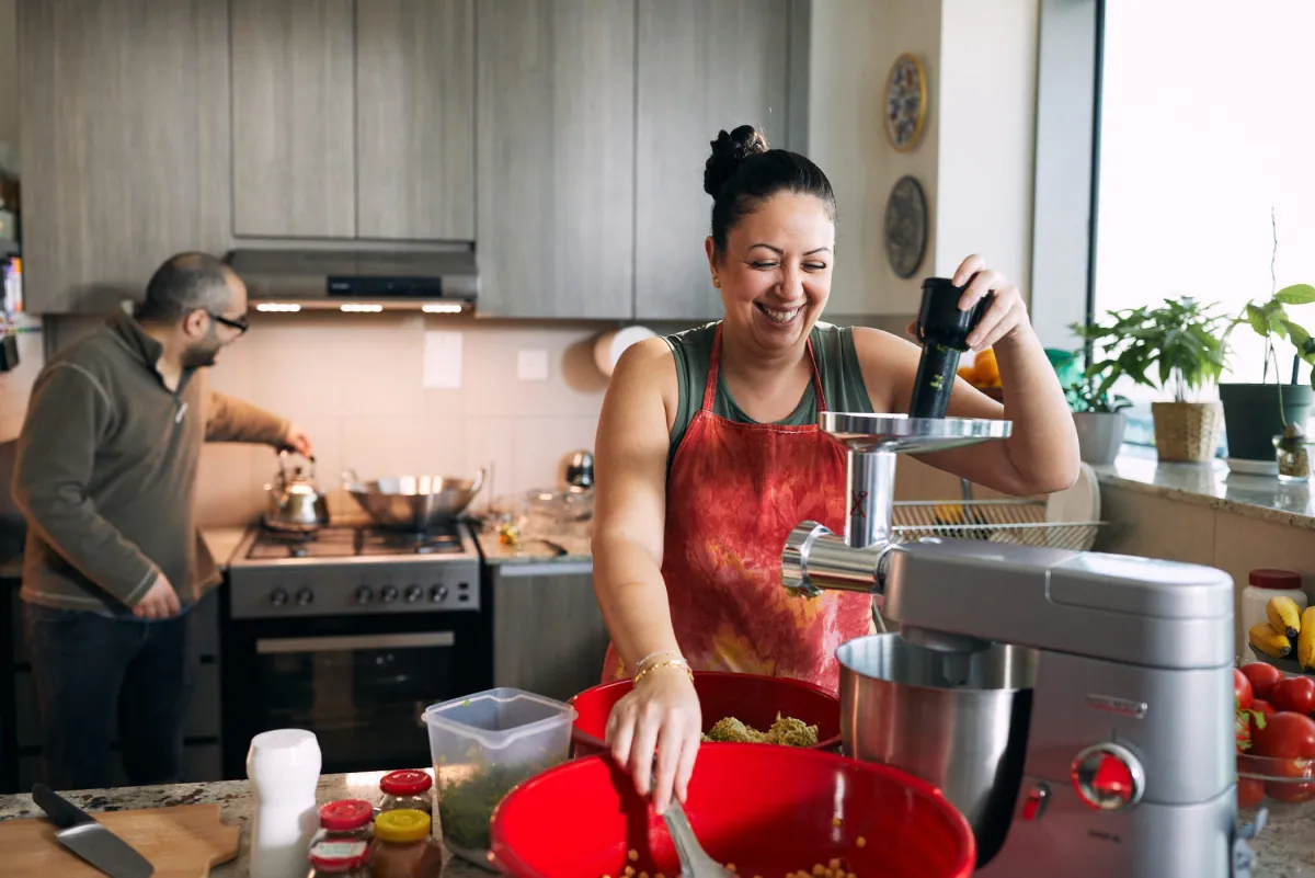 Watching the weather forecast like hawks with producer Ben Hills, we realised that we had to get the entire outside BBQ scene styled, lit, shot and approved by 11 am if we were going to miss the worst weather. It was a bit of a scramble, but we did it with the help of a fantastic crew who were all on top form as usual. By 11.30, it was heavy rain, and we had moved inside for the rest of the day. A large HMI detracts from the grey and miserable day, a bit of retouching removes the spots of rain, and it’s like we were having a lovely old time on a summer’s day.